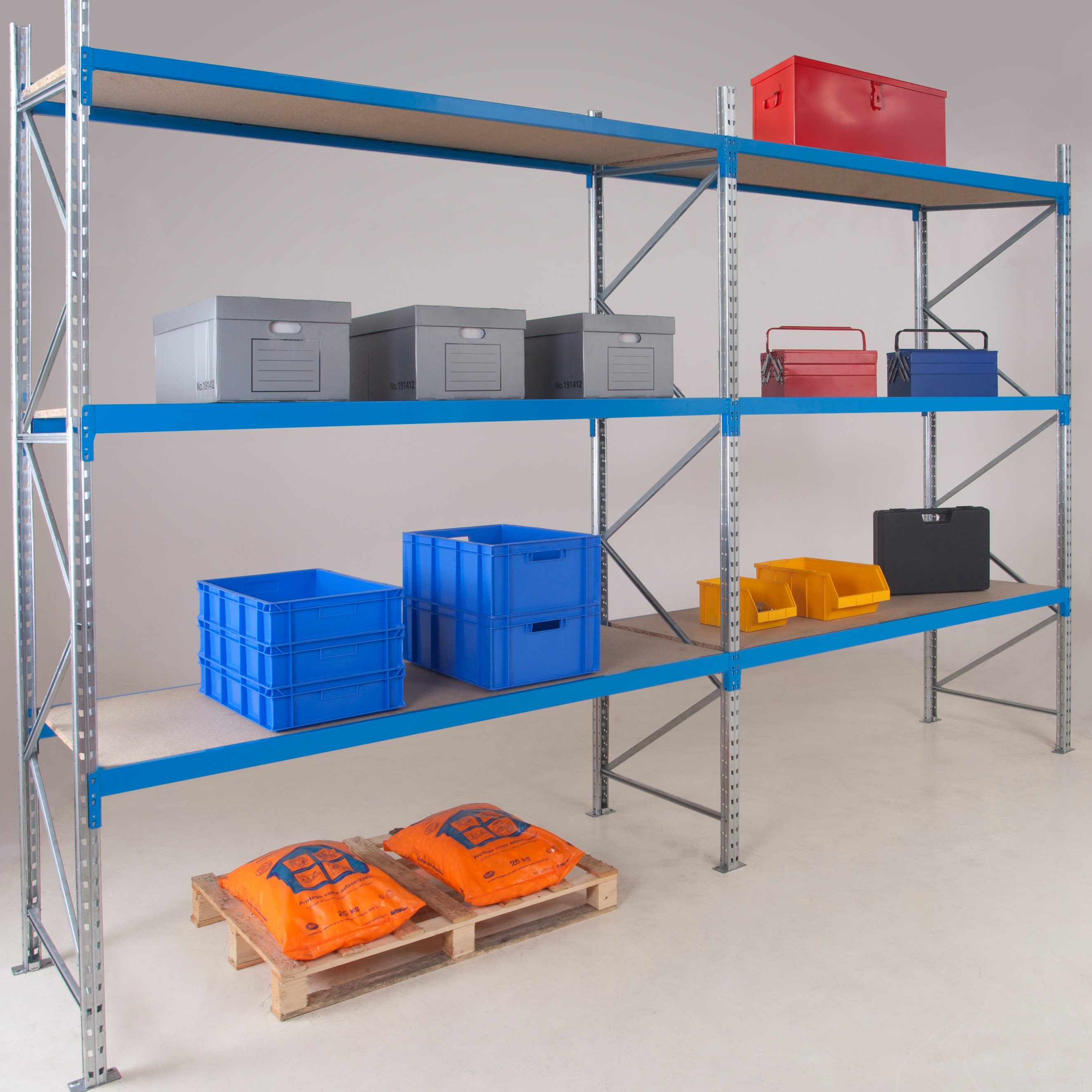 Plusieurs profils et un éventail de plateaux répondent aux différents produits à stocker : bacs, cartons, pneus, vêtements, caisses, …