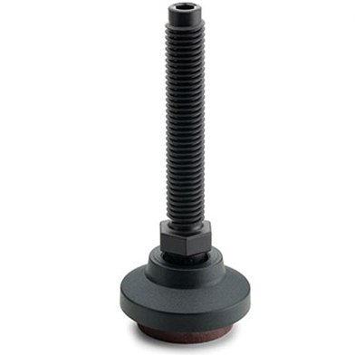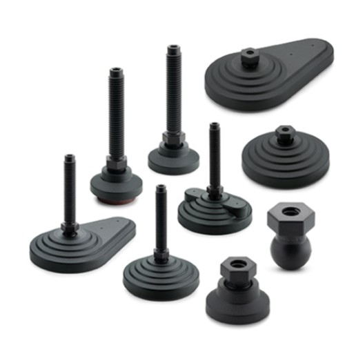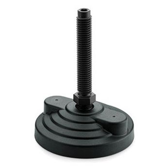 Pieds de machines réglables base en technopolymère, tige en SUPER-technopolymère, disque antivibratoire en PUR