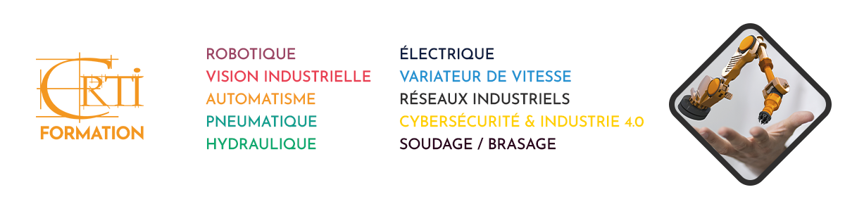 CRTI Formation est un centre de formation spécialisé en robotique, automatisme et vision industrielle. A ces domaines s'ajoutent également afin de proposer une offre complémentaire, des formations en réseaux industriels, variateurs de vitesse, hydraulique, pneumatique et électricité. Nous proposons également du coaching sur poste de travail et des audits afin d'élaborer un accompagnement personnalisé. Nos formations sont dispensées en INTER, dans nos centres de formation du Mans et de Nancy mais également en INTRA, dans vos entreprises avec des programmes de formation adapté à vos process.